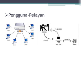 Kelebihan Sistem Rangkaian Komputer Berkongsi Fail Pengguna dapat berkongsi fail yang disimpan pada pelayan server atau komputer pusat.